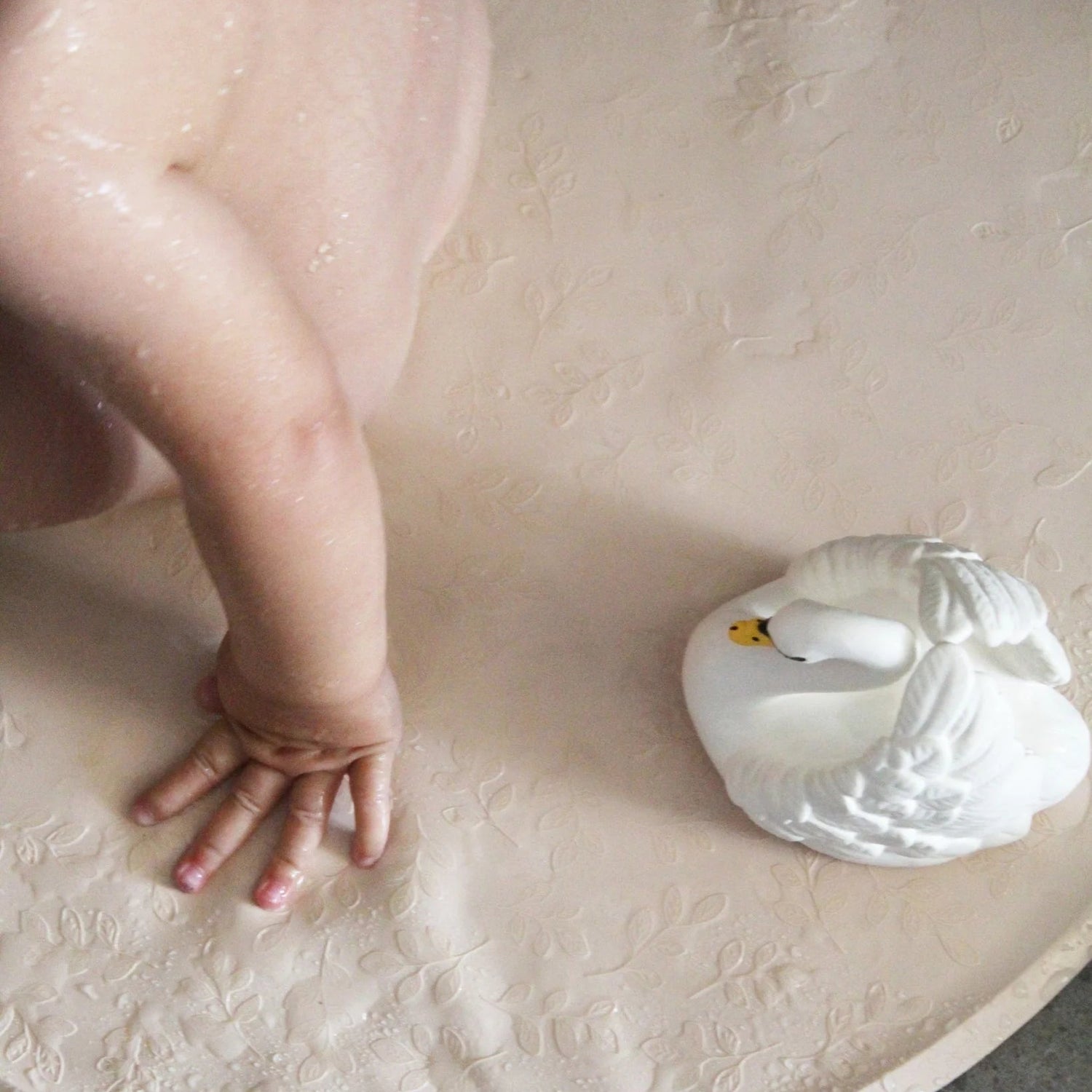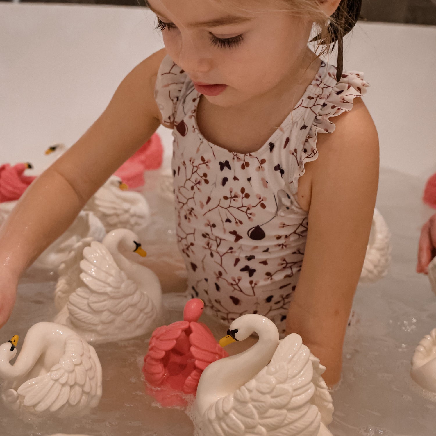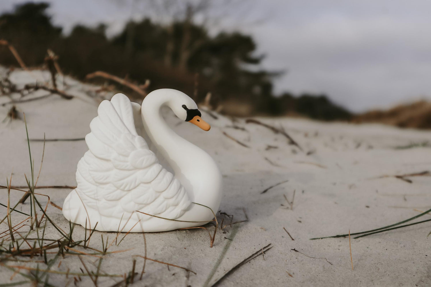 Stor, hvid badesvane fremstillet i 100% naturgummi. Badelegetøjet er uden huller og ventil, så der ikke kan dannes mug indeni. Badedyret er CE testet efter Europæisk standard EN71.