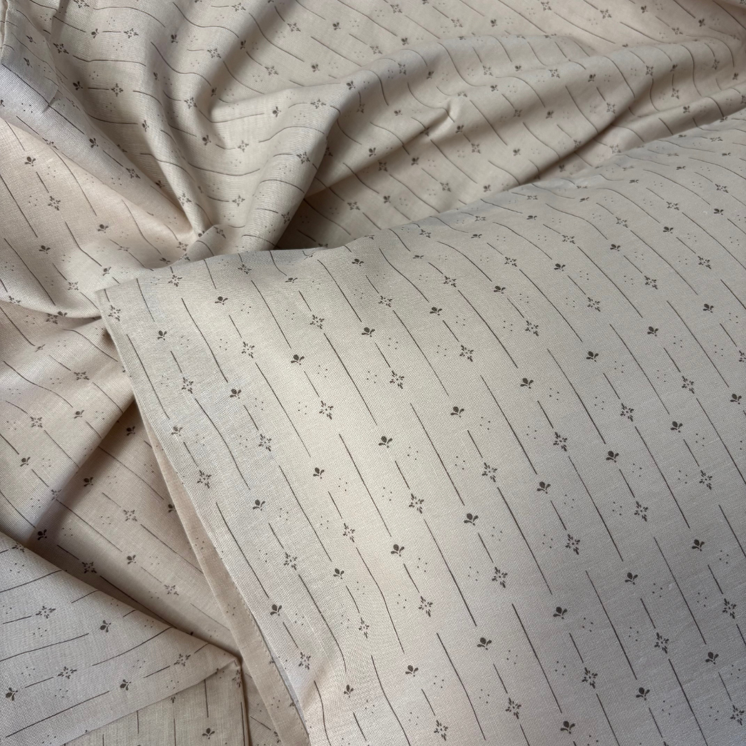 Blødt og behageligt baby sengetøj med sødt all-over print af små fine blomsterstriber. Perfekt til børn, der elsker neutrale og feminine detaljer på børneværelset.