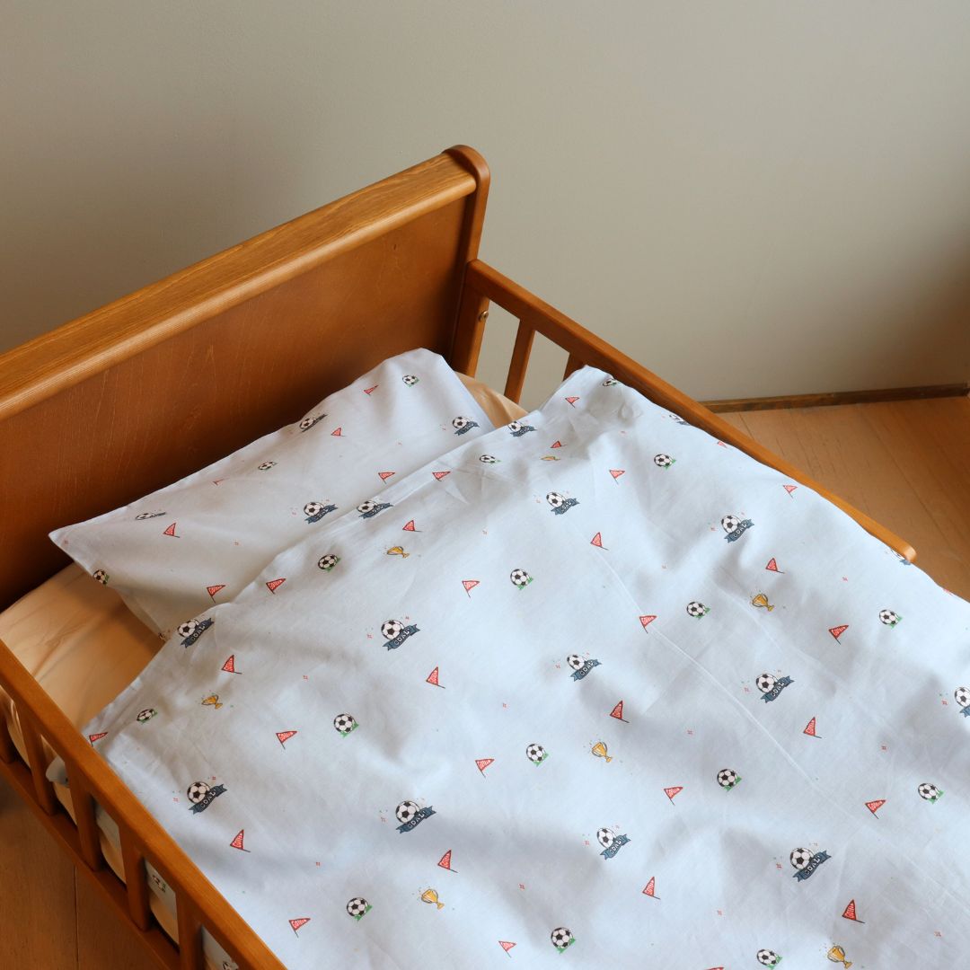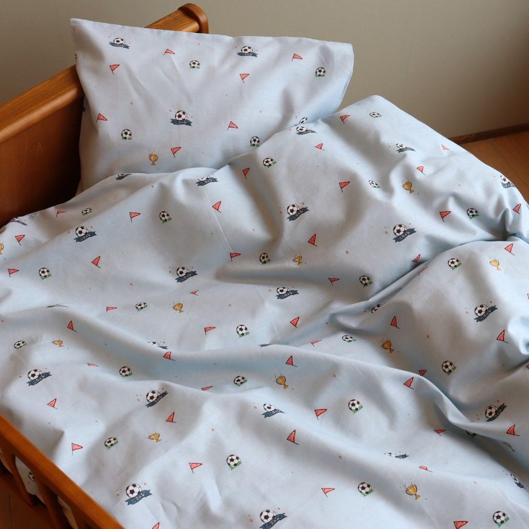 Blødt og behageligt baby sengetøj med fodbold-tema. Perfekt til børn, der elsker fodbold.