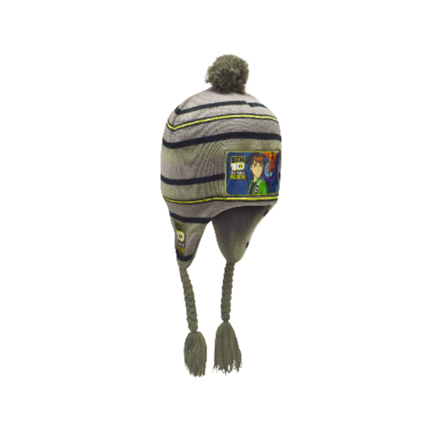 X - Ben 10 vinterhue - Strikhue til børn - Onesize - Gråstribet