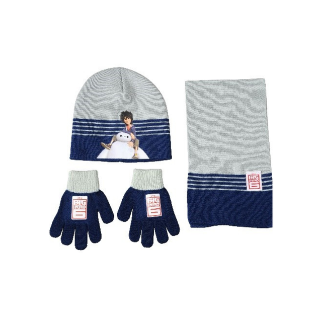 X - Big Hero hue, handsker og halstørklæde - 3-pak - Onesize - Grå/blå