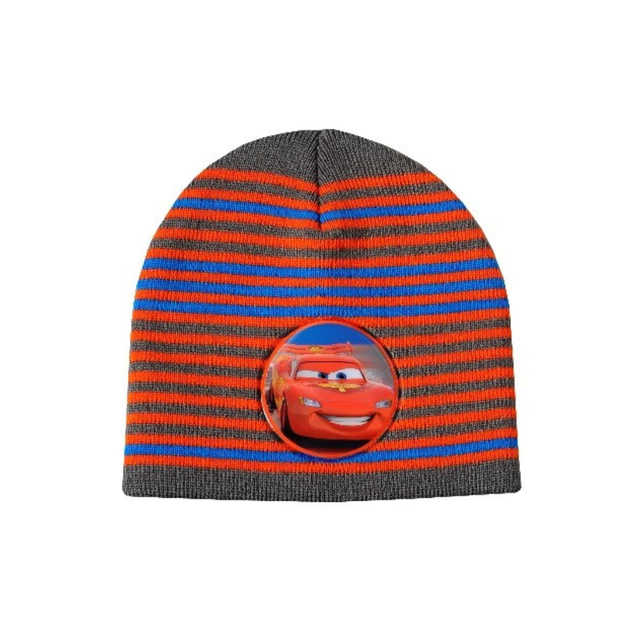 Sej vinterhue til den lille Lynet McQueen-superfan. Vinterhuen er i rød/grå stribet strik, med et motiv af Lynet McQueen.