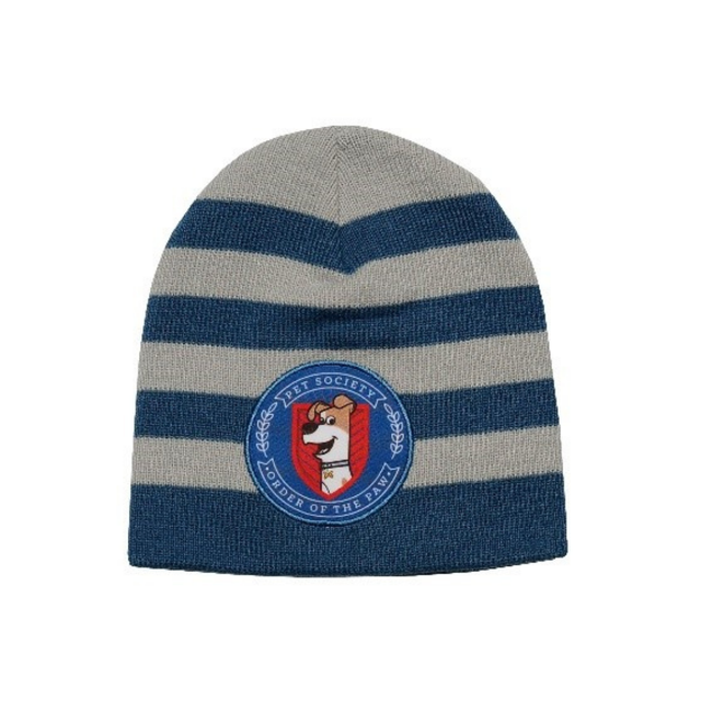 Super sej vinterhue til fans af Kæledyrenes hemmelige liv! Hun er blå- og gråstribet og har et billede i midten af en af figurerne fra Kæledyrenes hemmelige liv.
