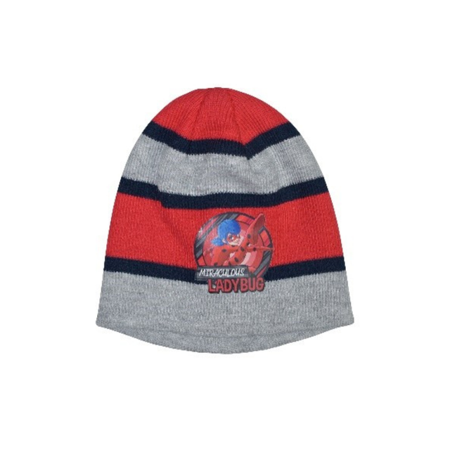 X - Miraculous Ladybug vinterhue - Strikhue til børn - Onesize - Rød og grå