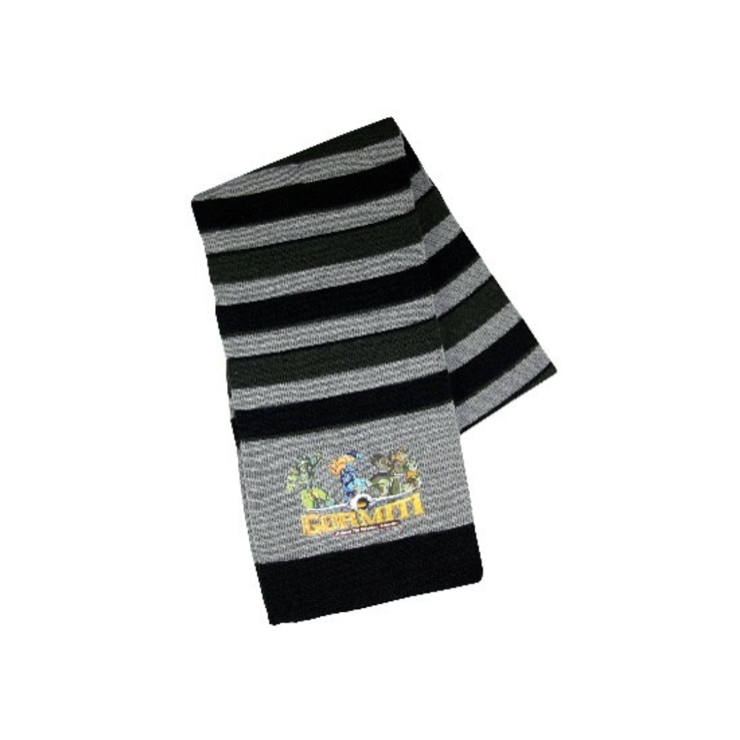Super sejt halstørklæde i sort og gråstribet, med et motiv fra Gormiti.